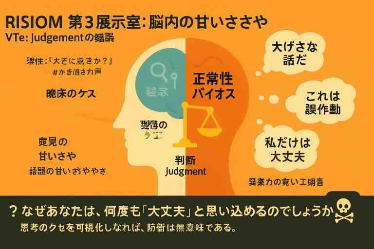 正常性バイアスが判断を狂わせる構造を図解。,「なぜあなたは、何度も『大丈夫』と思い込めるのでしょうか?」