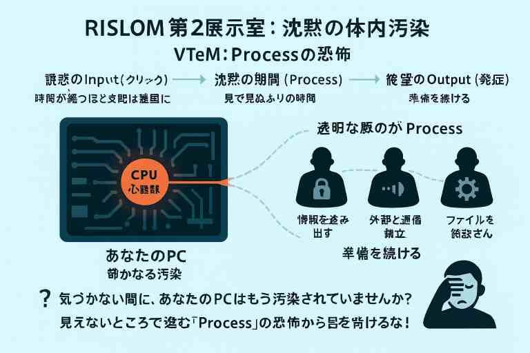 毒(マルウェア)が静かに体内で広がるフロー図。,「気づかない間に、あなたのPCはもう汚染されていませんか?」